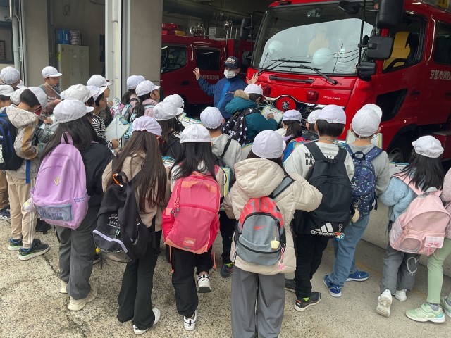 消防署さんからお話を聞いたり、消防車を見たりして、たくさんの学びがありました。