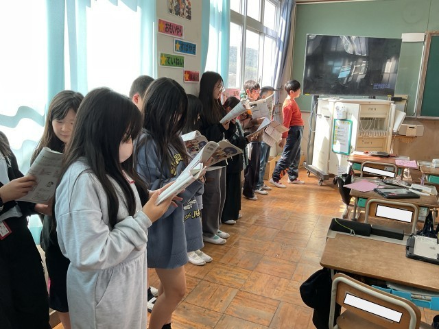 「それぞれの空」を歌いました。今回からパートに分かれて歌い始め、お互いの声につられながらも、自分のパートを綺麗な声で歌っていました。