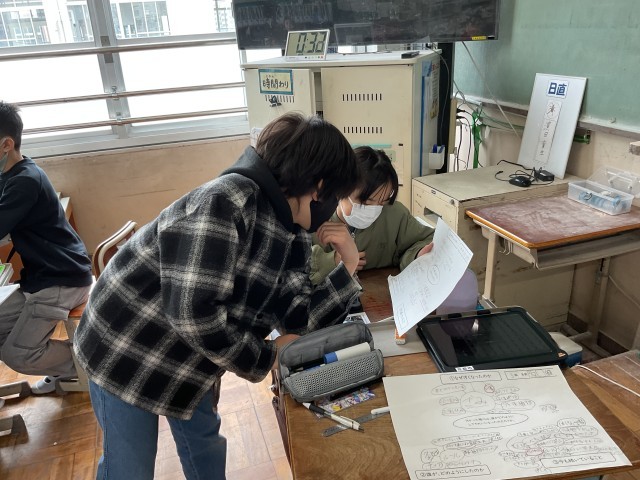 昔と今の鴨川を比べて、今はとても綺麗になったことに気づきました。それはなぜなのかを調べて、友達と共有し、学びを深めています。