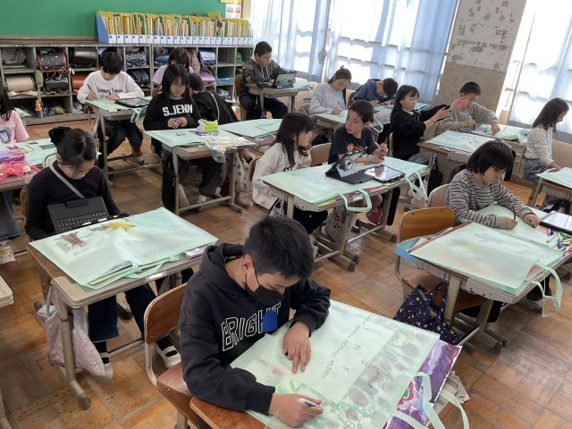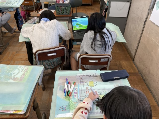 4年生の作品バッグを作りました。この1年間の思い出を絵に表していました。