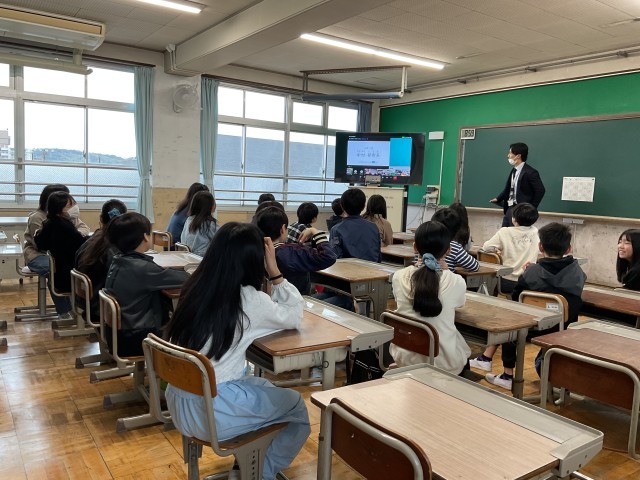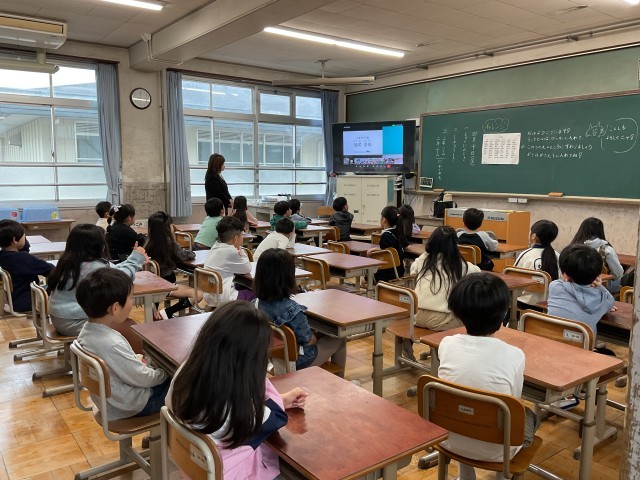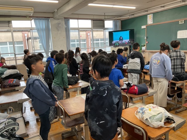 友だちと顔を見合わせながら、校長先生からの発表を聞いている子どもたちでした。