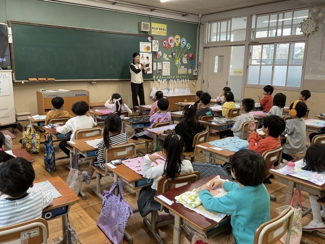 1年生にとって、小学校で食べるはじめての給食でした。先生の話をよく聞いて、少し大きなエプロンに袖を通し、力を合わせて給食の用意をすることができました。給食調理員さんに感謝しながら、味わって食べていました。