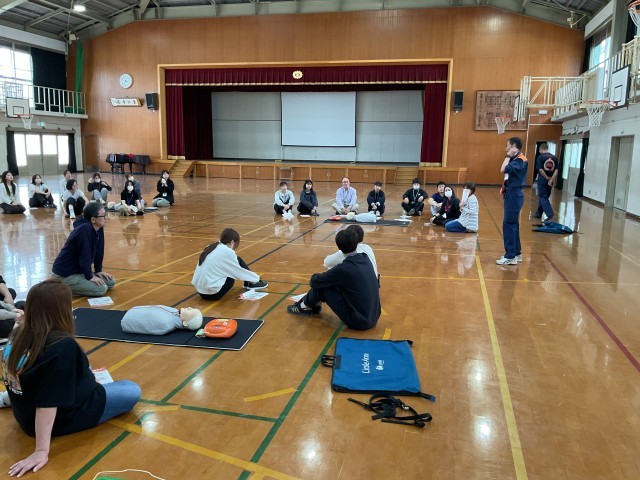 今日は、山科消防署の方々に来ていただき、救命救急の訓練を行いました。もしも子どもたちが意識不明になった場合の対応について学びました。もちろんもしものことがないのが一番なのですが、それでももしものことを考え備えておくことは大切です。