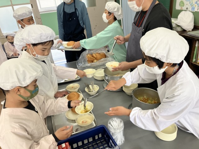 一人ひとりの食べられる量を聞きながら、調整して配膳頑張っています。