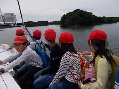 順番に二階に上がって案内を聞きます。いいお天気に恵まれて,気持ちいいです。ゆっくり進ませてくれているので,あまり揺れもなく快適です。