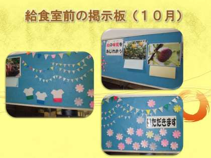 毎月工夫されている本校の給食掲示板,今月は秋ならではの食べ物を紹介しています。