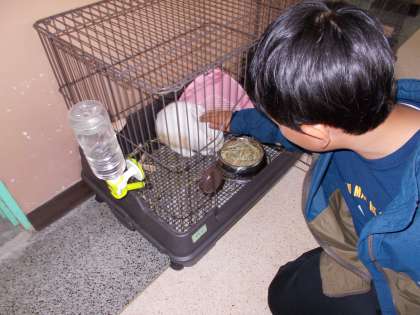 理科「私たちの体と運動」では,どのようなつくりやしくみで,わたしたちの体は動いているのか調べました。動物も同じようなしくみになっているのかたしかめるために,学校のぴょんとゆきちに触れて調べました。予想をもとに骨や筋肉,関節の位置を調べ,筋肉の発達のしかたなどについても考えました。