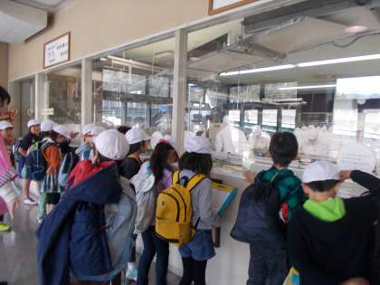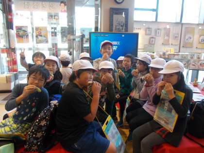 八ツ橋の歴史を学んだ後,実際に作りたての夕子を食べさせてもらいました。また,2階の工場では作られる過程を見ることができました。工夫や気をつけている点など教えてもらいたくさんのことを学んだ1日でした。