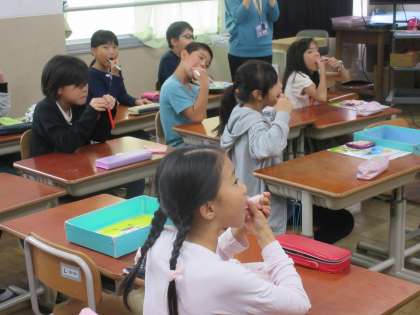 みがき終わった子どもたちからは,「歯がツルツルになった」など声が上がっていました。