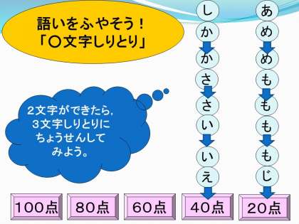 回数を重ねることにより,短時間にたくさんの言葉が集められるようになってくるはずです。