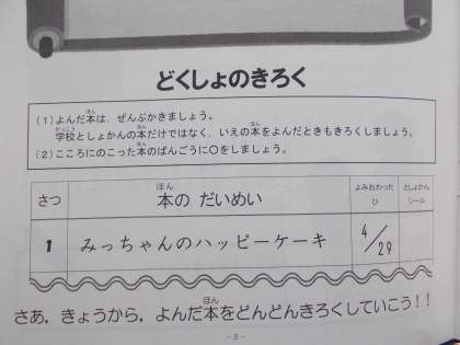 よみおわったあとは だいめいと よみおわったひを かきましょう。