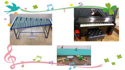 ひんと★ がっきが たくさん あります。