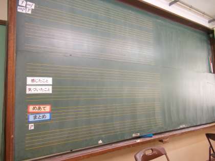 ひんと★ こくばんも きょうしつと ちがうところが ありますね。