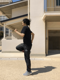 •かかとが一直線にお尻に向かって上がってくるようにひざを曲げる