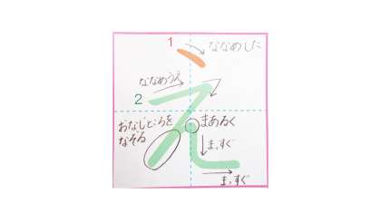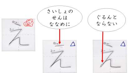 また まあるく まがったら まっすぐよこに ぴたっと とめましょう。