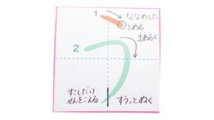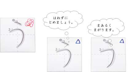 さいごは たてせんを すぎたところで すうっとちからを ぬきましょう。