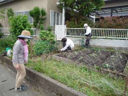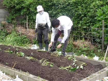 学しゅうそうだんびにきた人に見てもらった“さつまいものなえ”を おひるからちいきの方がきてくださって,はたけにうえました。