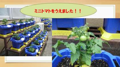 べつのプランターにもタネからうえているミニトマトもあるので,子どもたちと成長の様子が見られたらなと思います。