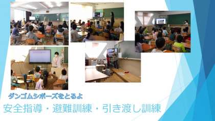 第1回目の避難訓練の時に,「ダンゴムシの姿勢」を覚えた子どもたちは,安全指導の中でも「危険から身を守るためにダンゴムシポーズになる」と答えていました。