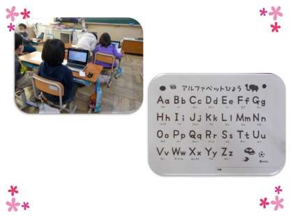 ローマ字の表を使って,アドバイスをもらいながら,一人一人一生懸命ログインすることに挑戦していました。