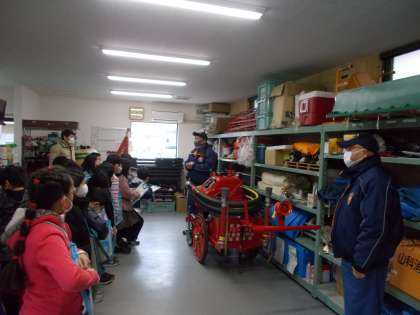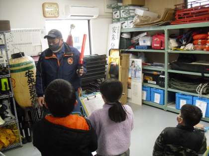 今日は消防団について勉強するためにたくさんのお話をしてもらいました。