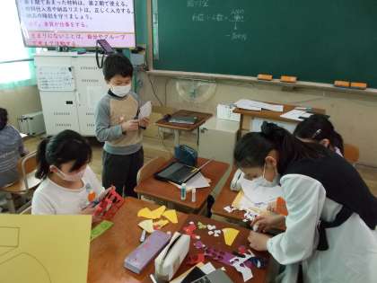 5年生は,「仕事」「働く」ということをテーマに学習を進めています。この日は,してみて,グループに分かれ,ケーキ屋さんの仕事をしてみて,働くとはどういうことなのか,大切なことは何かを考えました。
