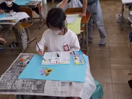 図画工作科でまぼろしの花を描きました。思い思いの花が咲き乱れていましたよ。