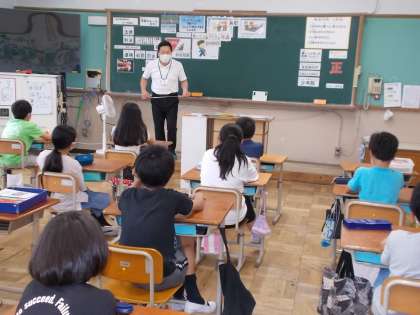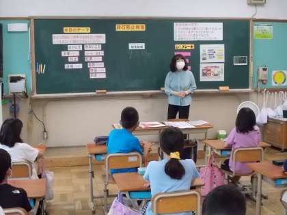 山科警察署のスクールサポーターの方を講師としてお招きし、非行防止に係るお話を聞きました。身近な問題を取り上げ、善悪の判断が正しくできているかどうか振り返って考えてみました。