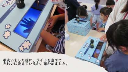 特別なクリームとライトを使った手洗いの学習をしました。
