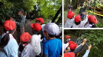 地域の山にはどんな植物があるのか、フォレスト協会の方々がたくさん教えてくださりました。触ってみたり、におっててみたりすることでこれまで知らなかった植物の特徴や性質を知ることができました。