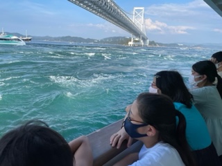 鳴門大橋の下で大きなうず潮が見れました。