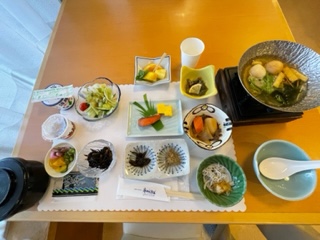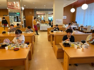 元気にいただきます! 食事中は黙ってモグモグと食べています。淡路島牛乳、淡路島ヨーグルト、淡路島玉ねぎが入った肉じゃが、美味しいものをたくさんいただいています。