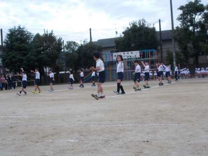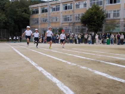1・2年生は、50m走をしました。直線をゴール目指して一生懸命走ることができました。