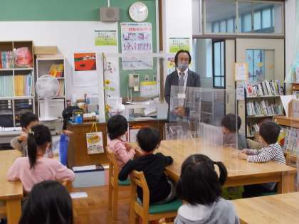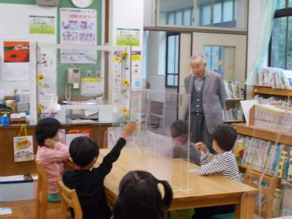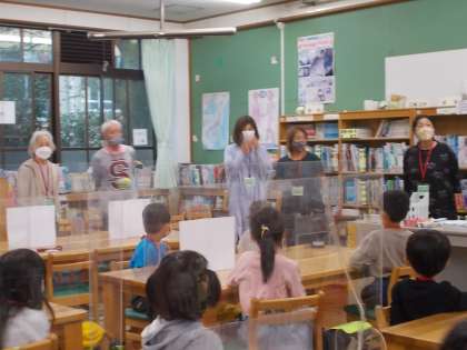 図書館で開講式を行い「約束をしっかり守ってお友達と一緒に楽しくお勉強していきましょう。」とのお話をききました。