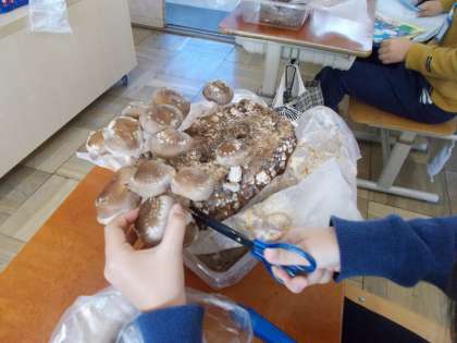 週明けは、しいたけが大きく成長しているので子どもたちも朝から目がキラキラとします。毎日欠かさず霧吹きでの水やり、しいたけ日記を頑張っています。今日で2回目の収穫でした。あと何回収穫できるのか楽しみです。
