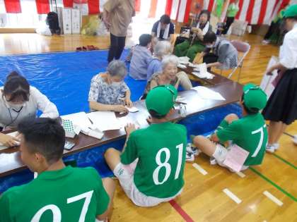 洛東高校の皆さんがボランティアとして、来校者の応対をしたり、ブースのお手伝いをしたりしてくれました。地域の方と笑顔で会話が弾んでいました。