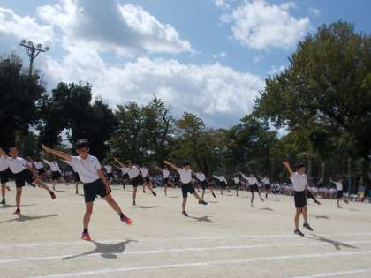 6年生の集団ウエーブやコミカルな動きのダンスに観客は大歓声。曲が変わるたびに違った動きを見せてくれて、観客を楽しませてくれました。指先までピント伸び、みんなの動きがピタリと揃った演技は、さすが6年生でした!
