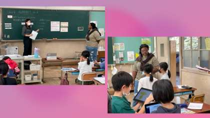 ABCソングを歌ったり、文字カードゲームをしたりしながら、アルファベットの大文字に慣れ親しみました。また、姓名の頭文字を友達に尋ねたり紹介したりする活動もしました。笑顔で目を見て話しかけると相手に伝わることに気が付き、工夫をしていました。