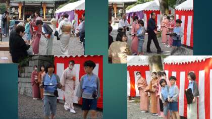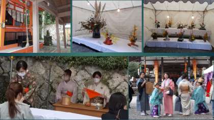 境内に続く鳥居付近ではお茶席が開かれ、安朱小学校ふれあいクラブ茶道部の子ども達がお茶席体験をさせていただきました。貴重な体験となりました。