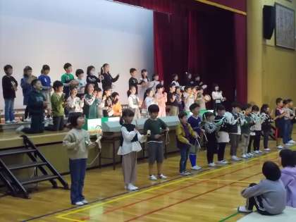 教科等の学習で学んだことを様々な形態で表現し、全校で鑑賞し合いました。