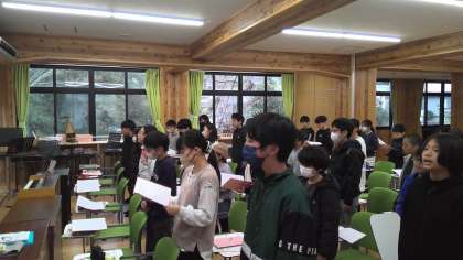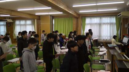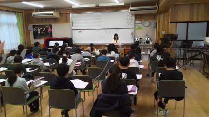 卒業式に向けて、音楽の授業では、卒業式で歌う曲の練習に入っています。今日は、学年全員での学習となりました。きれいな歌声で響くハーモニー。あと1ヶ月かけて、もっともっと上手になっていきます。