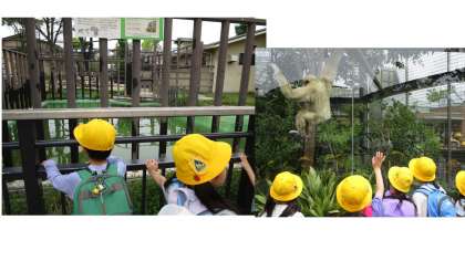 1・2年生で京都市動物園へ行きました。「ぞうがいるよ。」「フラミンゴって2本足で立つのもいるんだね。」「ミーアキャットが立っているよ。」などと話しながら、いろいろな動物たちを見て回りました。ヤギのエサやり体験では、獣医さんからいろいろな動物のお話を聞くことができました。