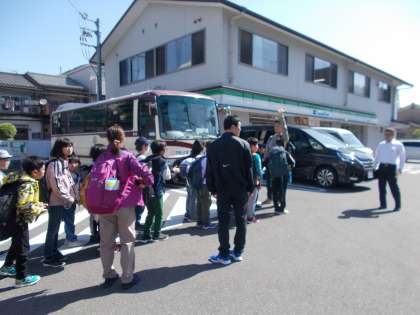花背山の家に向かうバスに乗る際,保護者がたくさん見送りに来てくださいました。