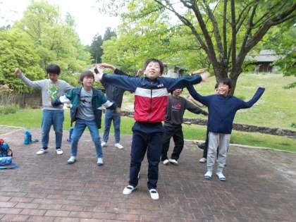 「朝食まで少し時間があるから,みんなでラジオ体操しようよ!」