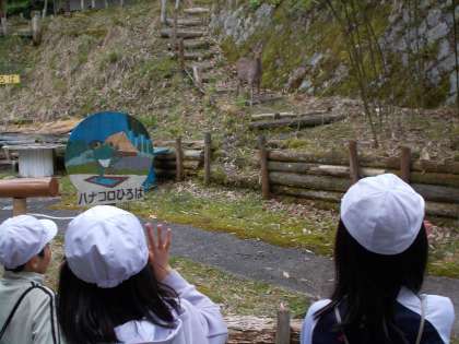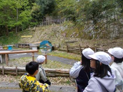 フィールドアスレチックに向かう途中,野生のシカに遭遇。人に慣れているのか,じっとこちらを見てくれていました。間近で初めてシカを見た子もいて,びっくりしていました。