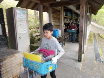 最後の活動は,野外炊事です。所員の先生の諸注意を聞いた後,準備に取り掛かりました。