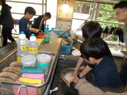 お米係,野菜係,かまど係に分かれて,準備を進めます。