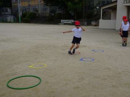ケンステップを跳んだり、5歩跳びで誰が遠くまで跳べるかをためしたりしました。