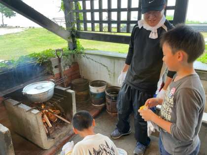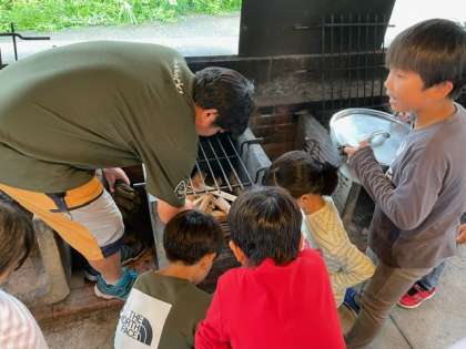 かまど係は薪を上手に組み上げ、見事に火をつけてくれました。