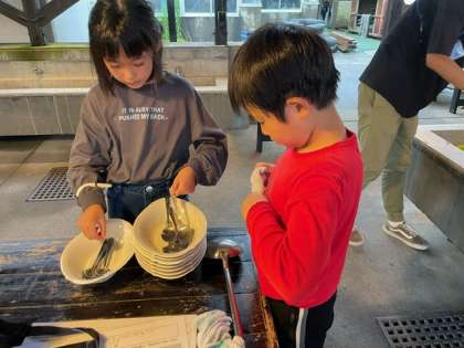 ごちそうさまのあとは、片付け。ここでもグループで協力しました。
